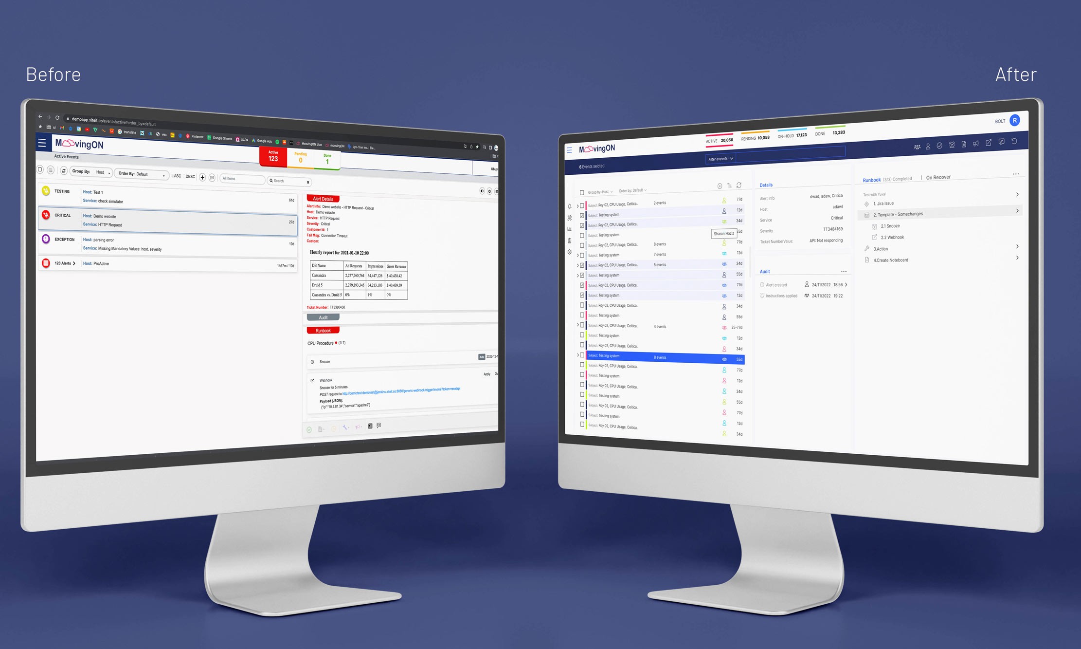 The redesign of the MoovingON platform resulted in a clearer, more actionable operating environment for NOC, SRE, and DevOps teams, enabling them to detect, triage, and resolve incidents faster while reducing alert noise and cognitive load. By unifying key workflows on‑call management, events, guidelines, and roles into a consistent interface, the product now better supports 24/7 operations, improves collaboration between shifts, and strengthens MoovingON’s positioning as an “Always‑On” cloud command center for its customers.